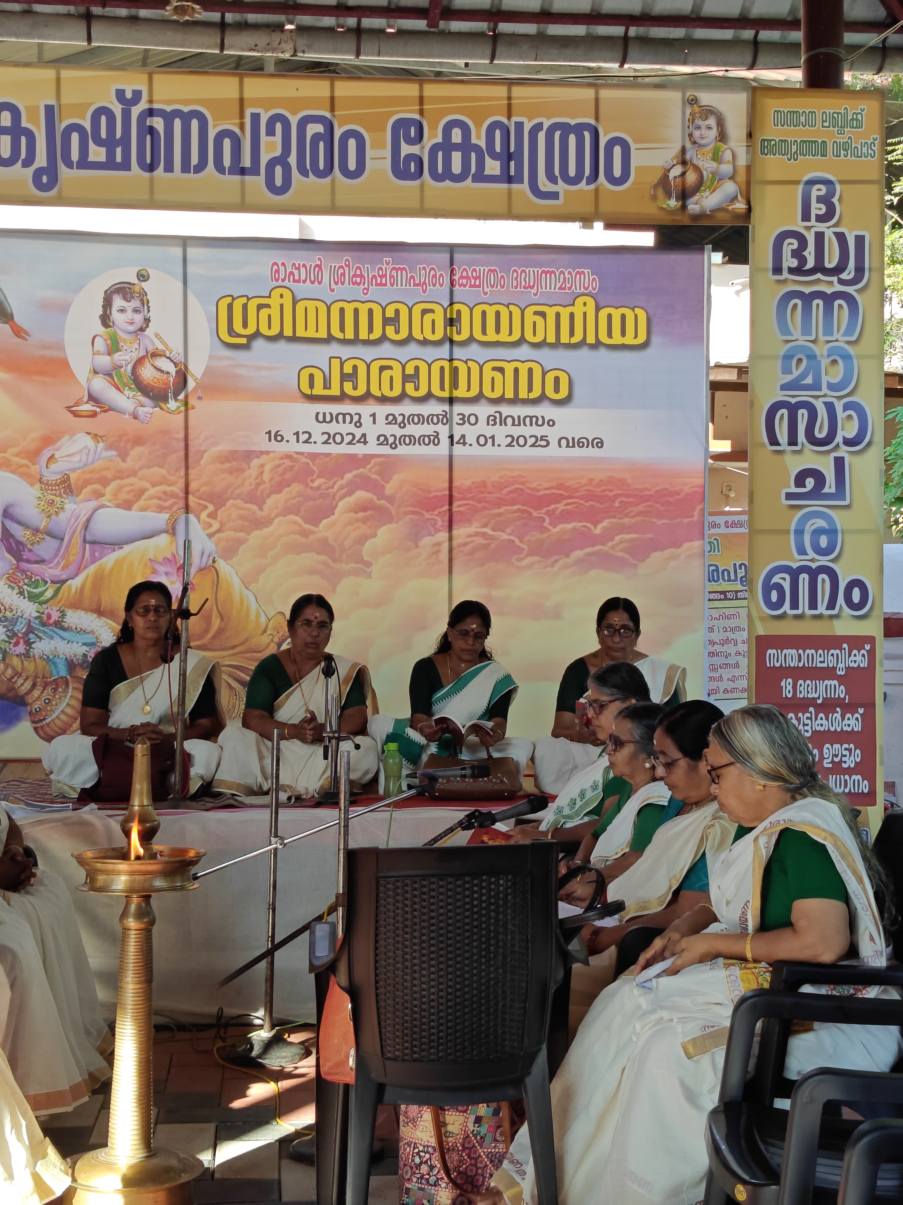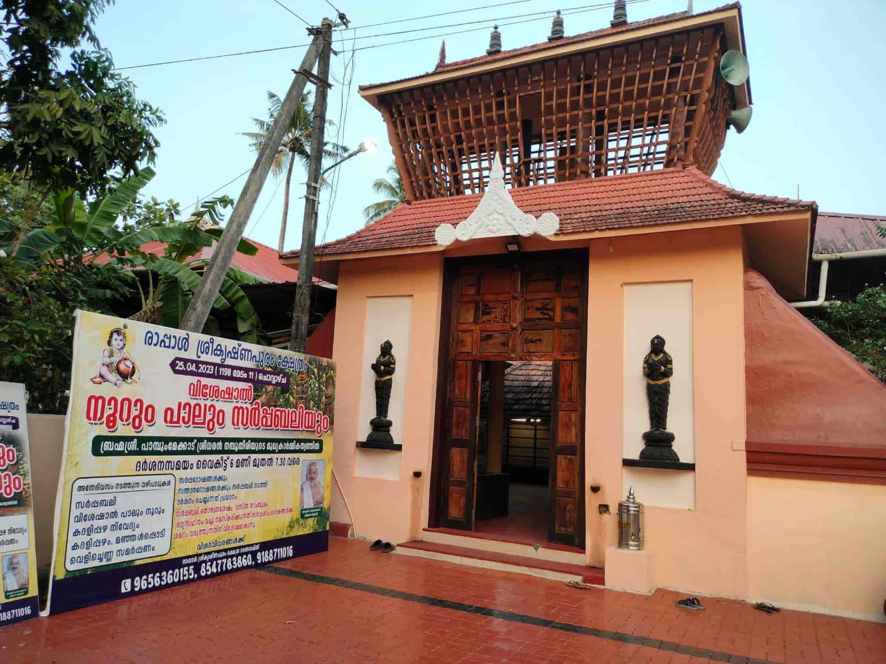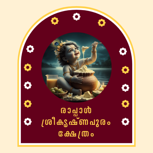 Rappal Sree Krishna Puram Temple, located in the serene village of Rappal, Pudukkad, Thrissur district, Kerala, is a sacred place of worship dedicated to Lord Krishna. Known for its traditional Kerala-style architecture and timeless rituals, the temple is a spiritual haven for devotees. The AgraShaala (sacred dining hall) serves as a hub for community gatherings, with Annadanam (community feasts) being a key offering. The temple also hosts vibrant festivals like Janmashtami and Vishukkani, celebrating devotion and cultural heritage. Visitors are welcome to experience the divine presence, participate in daily poojas, and immerse themselves in the peaceful ambiance of this holy place.